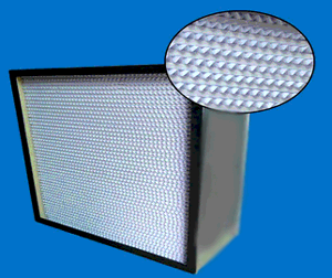 有隔板高效過濾器是用超細纖維作濾料、優質牛皮紙熱滾壓成形或采用膠版紙、鋁鉑作分隔板,與木框或鋁合金框膠和而成,具有過濾效率高,阻力低,風量大的優點。