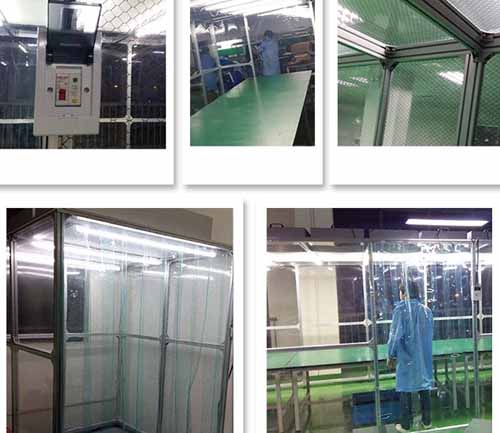 2、防靜電垂簾:四周圍用防靜電垂簾(或亞克力板),防靜電效果好、透明度高、網(wǎng)格清晰、柔韌度好、不變形、不易老化;